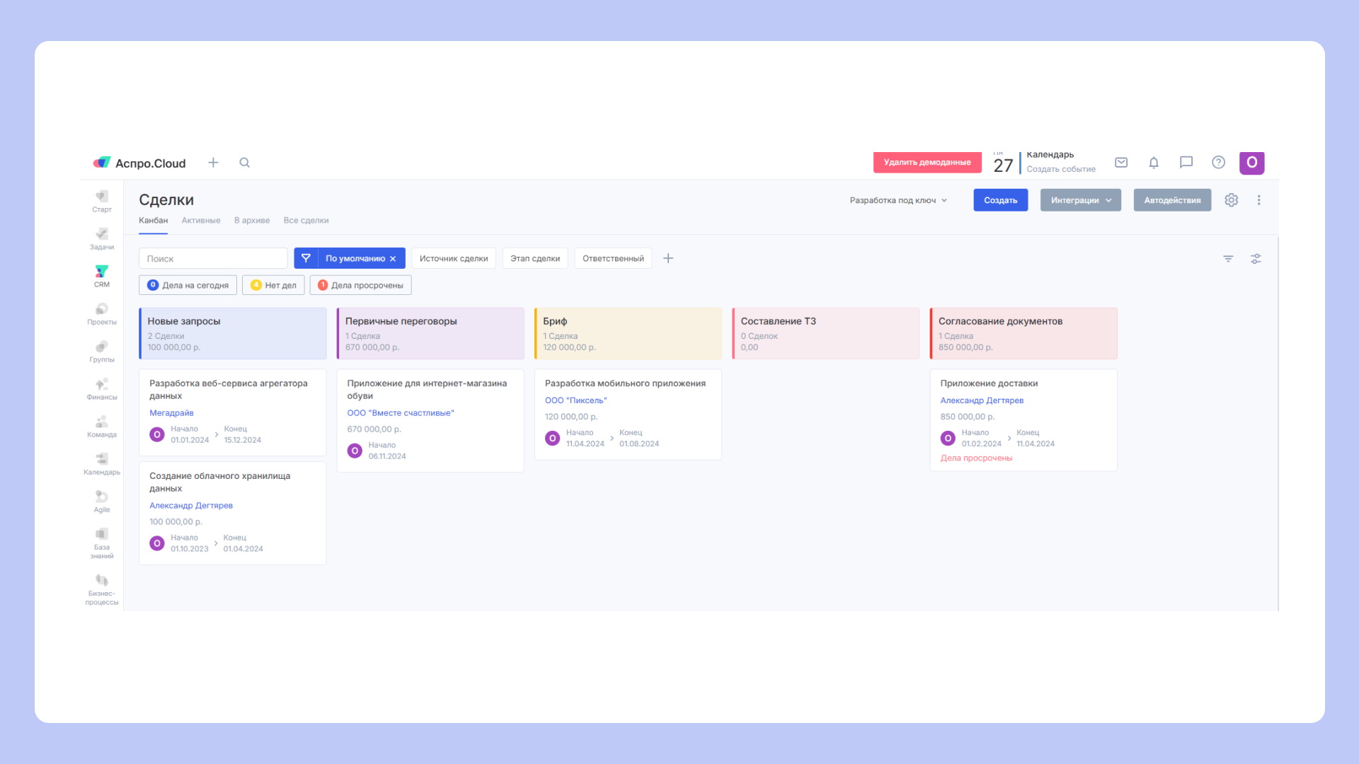 Позиционирование: комплексная система для управления проектами, CRM и финансами.