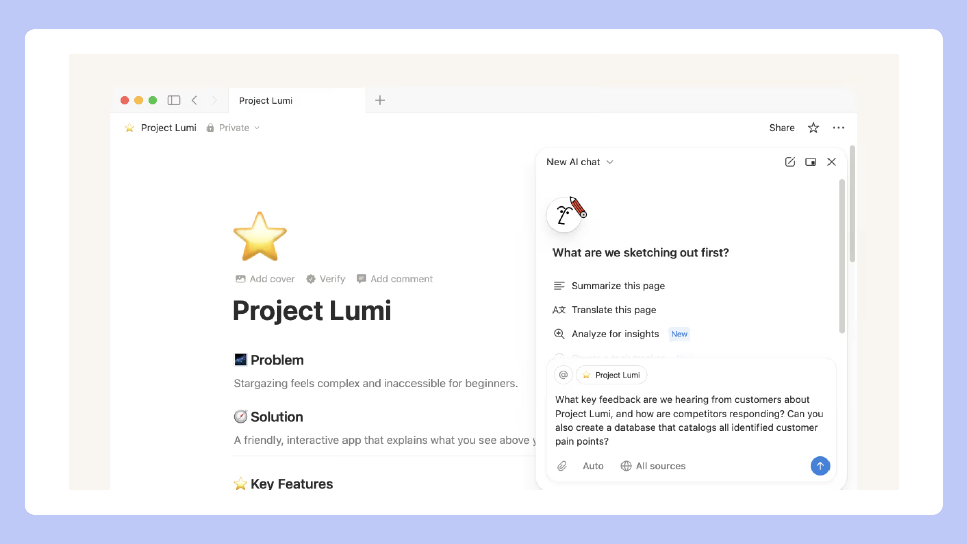 Позиционирование: универсальная платформа для организации знаний и задач.