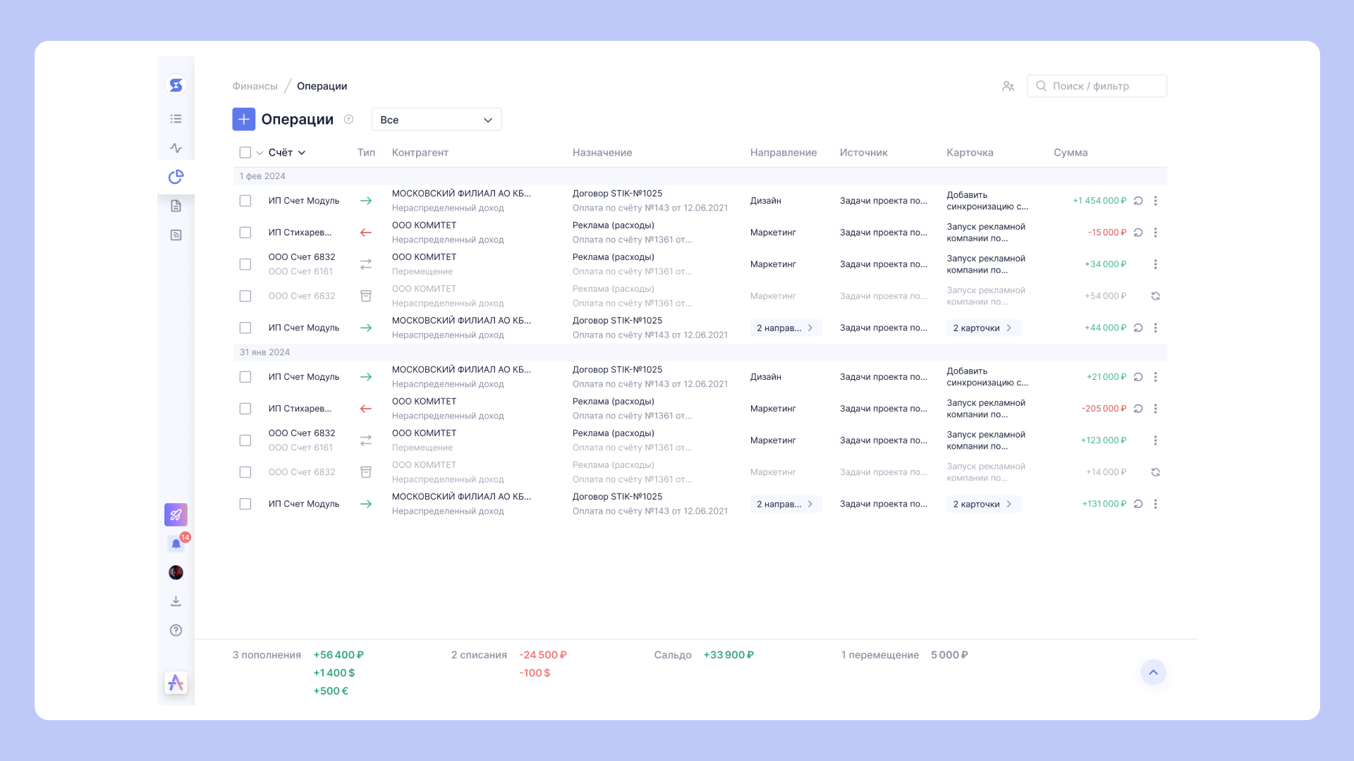 Кому подойдет: смешанным командам (IT, дизайн, маркетинг), которым нужен единый инструмент для управления задачами, временем и финансами.