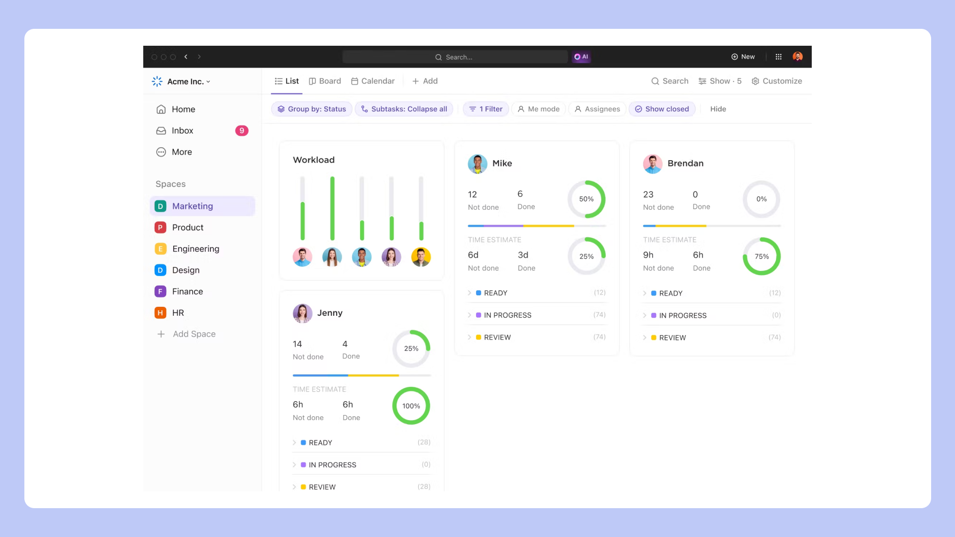 Ключевые преимущества: десятки видов представлений задач (список, канбан, диаграмма Ганта), встроенная база знаний, цели, Whiteboards.