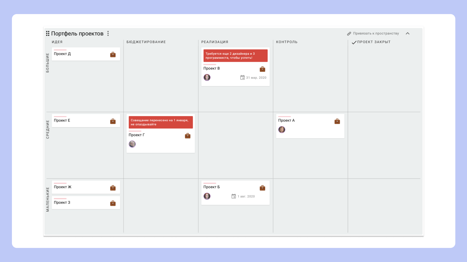 Кому подойдет: тем, кому нужно управлять простыми проектами, где достаточно визуального Kanban.