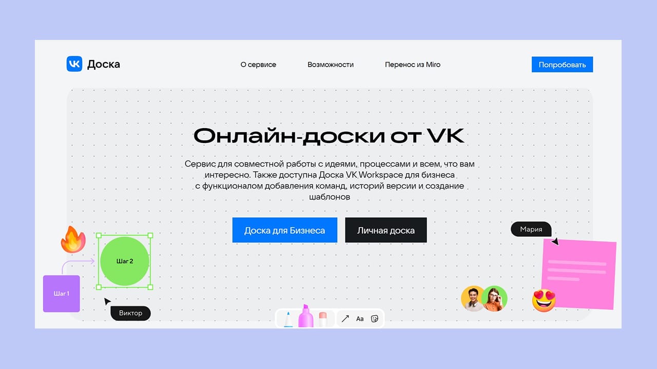 Часть экосистемы VK WorkSpace. Сервис активно развивается и заявляет о качественном импорте данных из Miro.