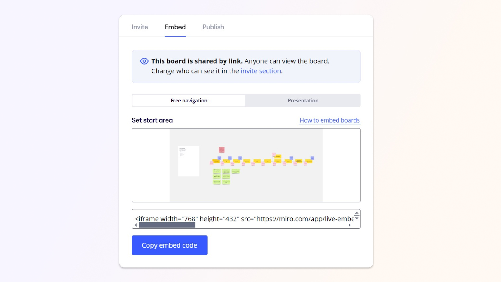 - Перейдите на вкладку Embed и скопируйте ссылку.