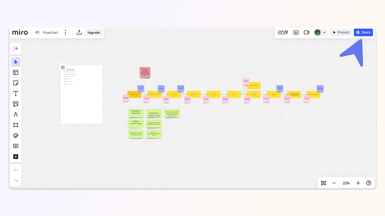 Теперь доска находится внутри проекта. Можно редактировать стикеры, двигать элементы и проводить презентации, не покидая Shtab.
