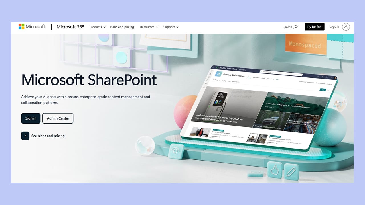 SharePoint — один из старейших в своём классе и самых мощных корпоративных инструментов для организации коллективной работы и управления контентом. Он позволяет создавать внутренние сайты, страницы и базы знаний, управлять доступом и интегрироваться с остальными продуктами Microsoft 365.
