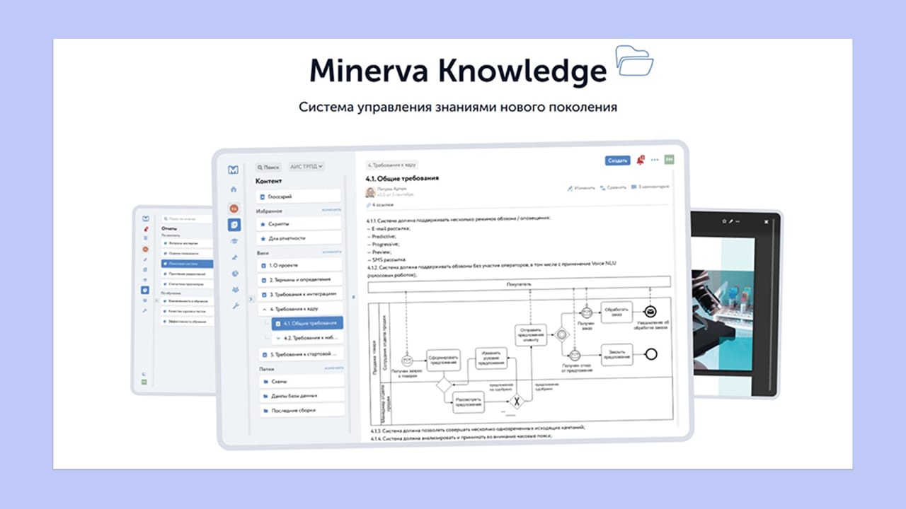 Платформа для крупных компаний, где важны безопасность и коллаборация. Поддерживает шаблоны, визуальные диаграммы (Draw.io, PlantUML), встраивание Google Docs, Miro, YouTube, «Яндекс.Карт». Функция автоматической миграции из Confluence делает переход особенно простым. Minerva использует поиск на базе GPT, что позволяет находить нужные данные даже при опечатках.