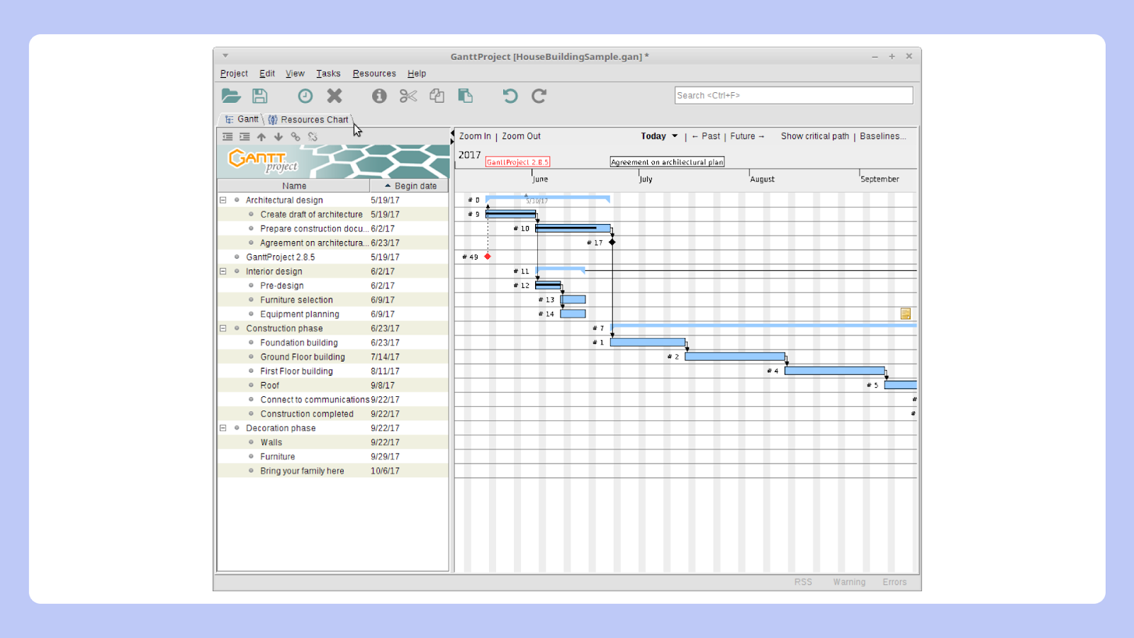 Простой и легкий десктопный инструмент. Подходит для создания несложных графиков и обучения основам управления проектами.