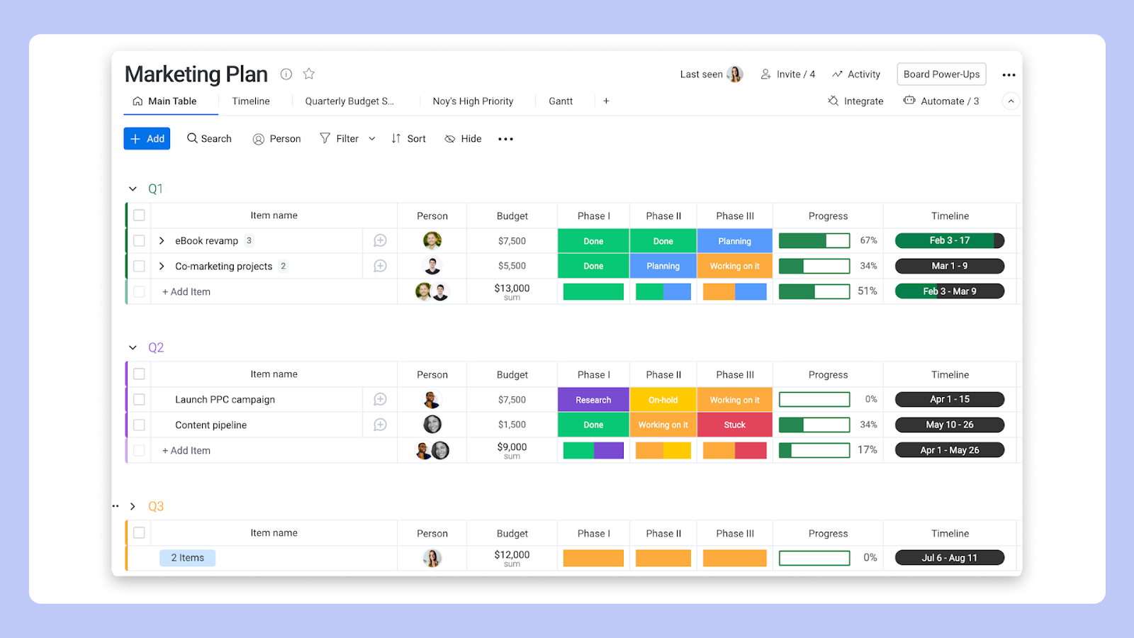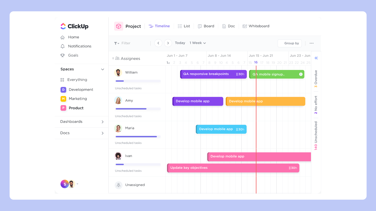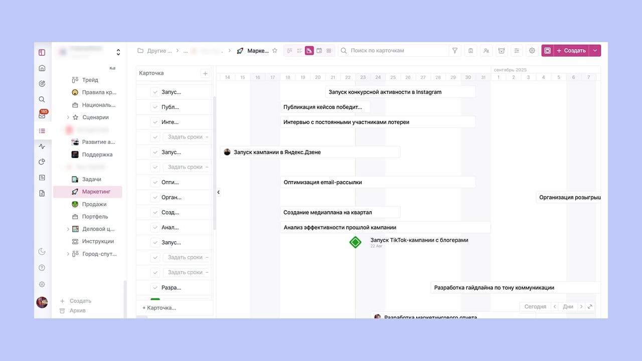 Платформа создает среду для бесшовного командного взаимодействия. Она позволяет комплексно выстраивать проектные планы, эффективно расставлять приоритеты задач и контролировать динамику их выполнения, поддерживая календарное планирование. Диаграмма Ганта — один из вариантов отображения задач наряду с канбан-досками, списками и календарями.