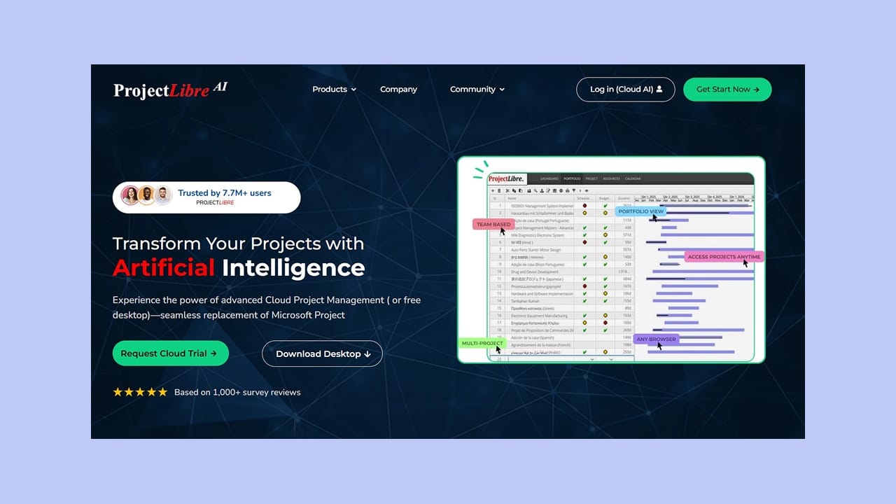 Это решение предлагает гибкую интеграцию данных, поддерживая импорт и экспорт в форматах .mpp, HTML и PDF.
