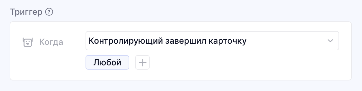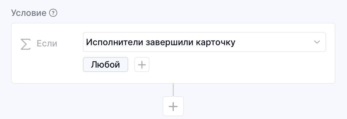 Разберём на примере. Допустим, нужно, чтобы карточка автоматически помечалась выполненной и перемещалась в нужный статус после того, как исполнитель и контролирующий завершили работу с карточкой. В Shtab это настраивается так: