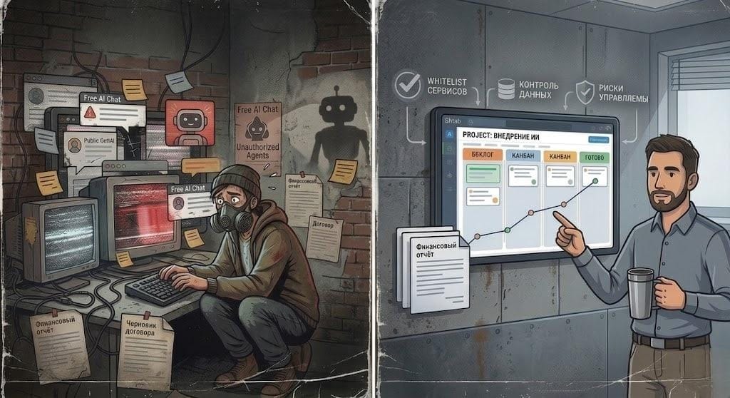 Это shadow AI — теневой ИИ. По данным Inc Russia, в малом и среднем бизнесе это один из главных источников инцидентов с данными. Инцидент с кэшированием ChatGPT показал: даже крупные платформы уязвимы. А генераторы вредоносного кода вроде WormGPT снижают порог входа для злоумышленников. Если руководитель проекта не видит, какие ИИ-сервисы используются в команде, он не управляет рисками. Они остаются вне зоны его внимания.