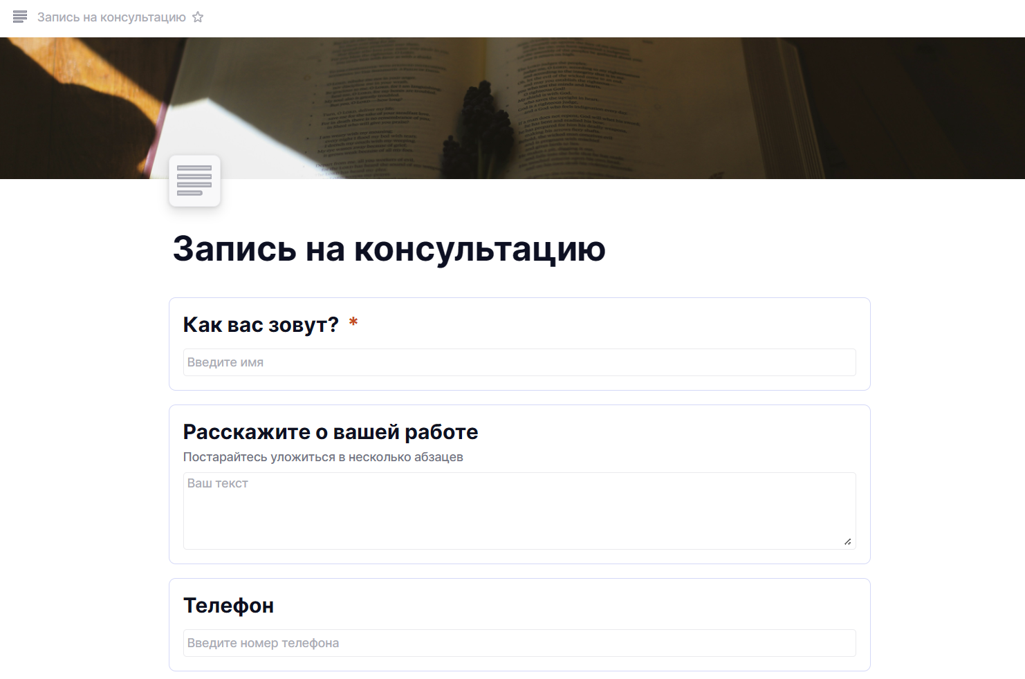 Бесплатный, знакомый всем, интегрирован с Google Sheets. Для внутреннего опроса или быстрой анкеты — отличный выбор. Для бизнес-задач есть серьёзные минусы: минимальные возможности дизайна, слабая условная логика в сложных сценариях и хранение данных за пределами РФ. Подходит стартапам на ранней стадии и командам, которым нужно собрать обратную связь за 5 минут. Google Forms