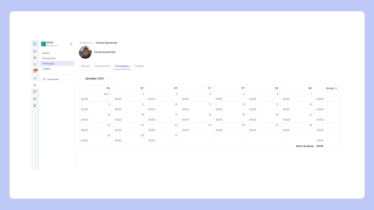 - Сервис уделяет внимание соблюдению work-life balance сотрудников. В режиме реального времени на панели менеджера отображается загруженность команды.
