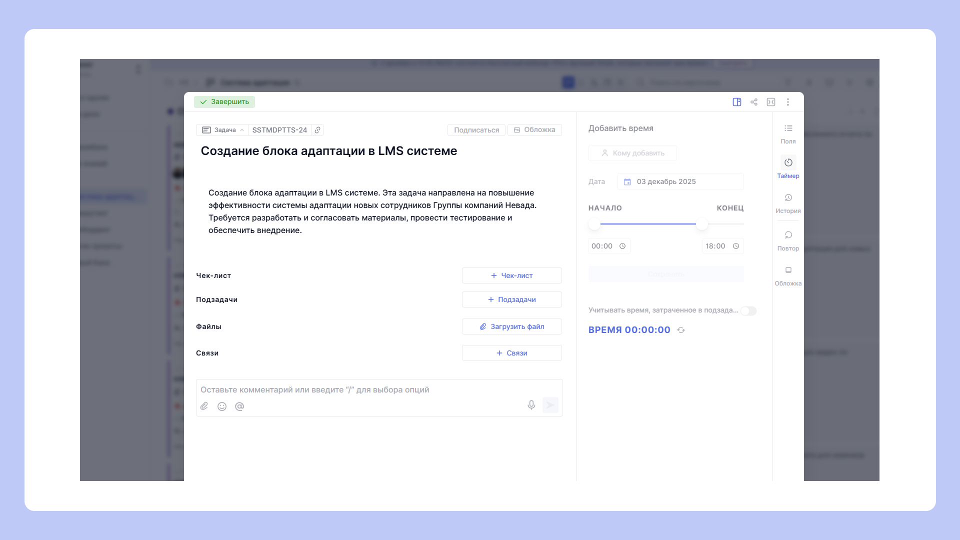 Простая система учета времени внутри задач — с таймером, ручным вводом и встроенной аналитикой.