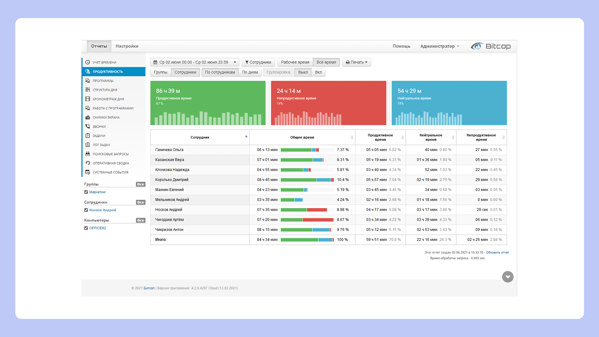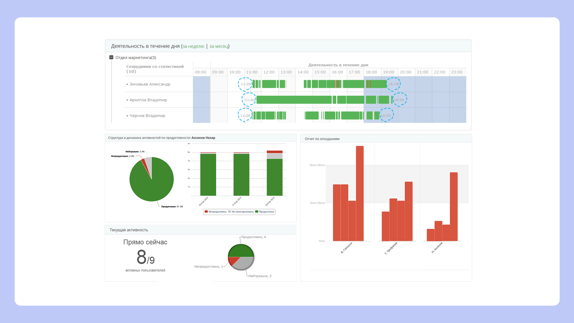 Программа автоматической аналитики, которая помогает увеличить эффективность персонала и получить детальную картину рабочего дня.