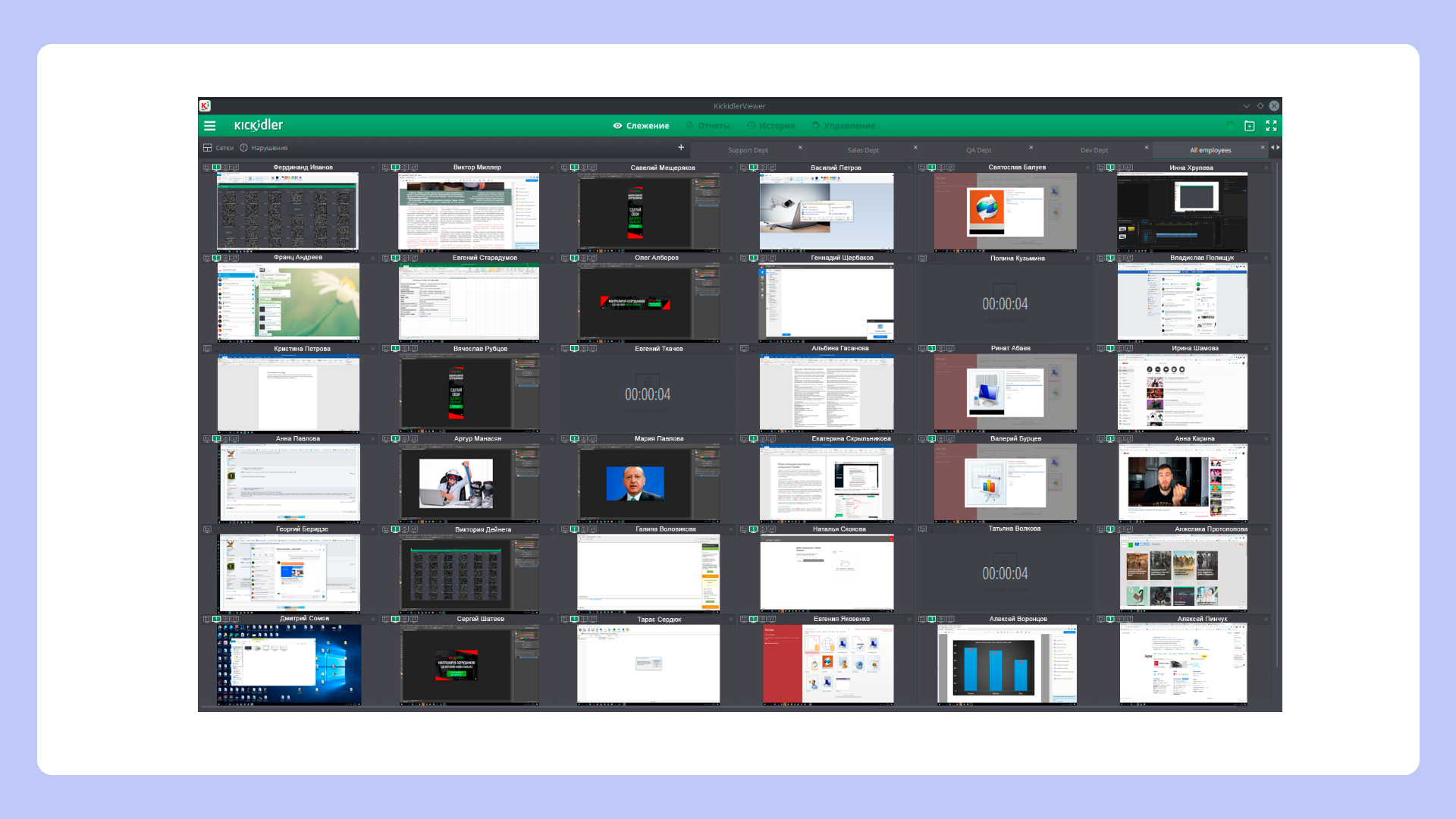 - выявление отвлечений и «молчащих» компьютеров;