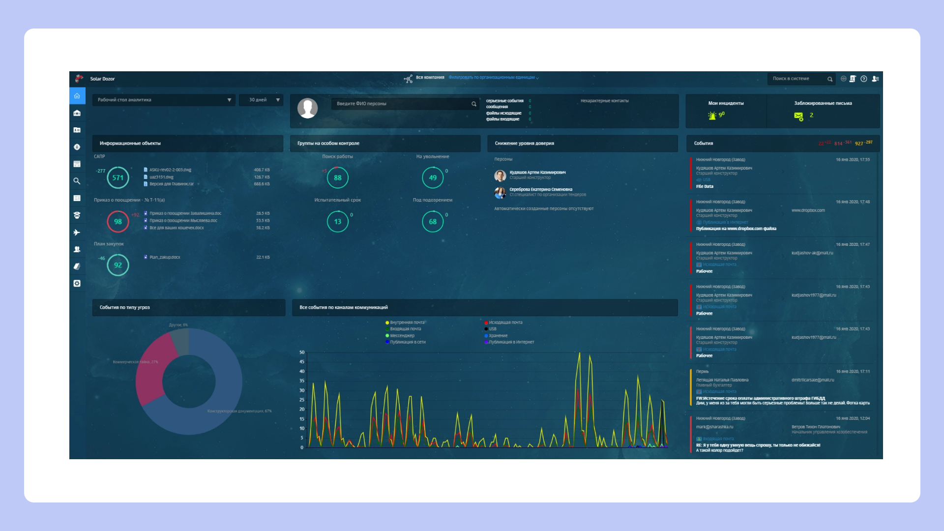 DLP-система, которая может использоваться для косвенного учета рабочего времени за счет анализа действий сотрудников.