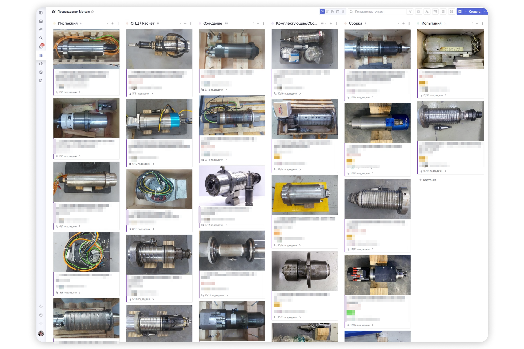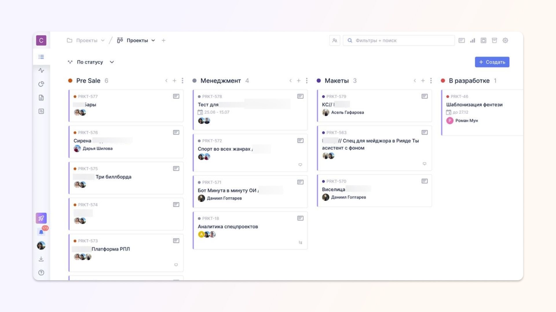 На доске задачи представлены карточками, объединёнными в колонки. Каждая карточка содержит ключевую информацию, а группировка по статусам (например, «Открытые», «В процессе», «На проверке», «Закрыты») позволяет отслеживать прогресс и контролировать незавершённые задачи.